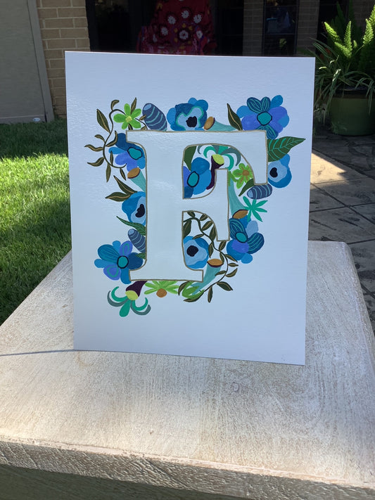 Floral Initial with Gold Outline